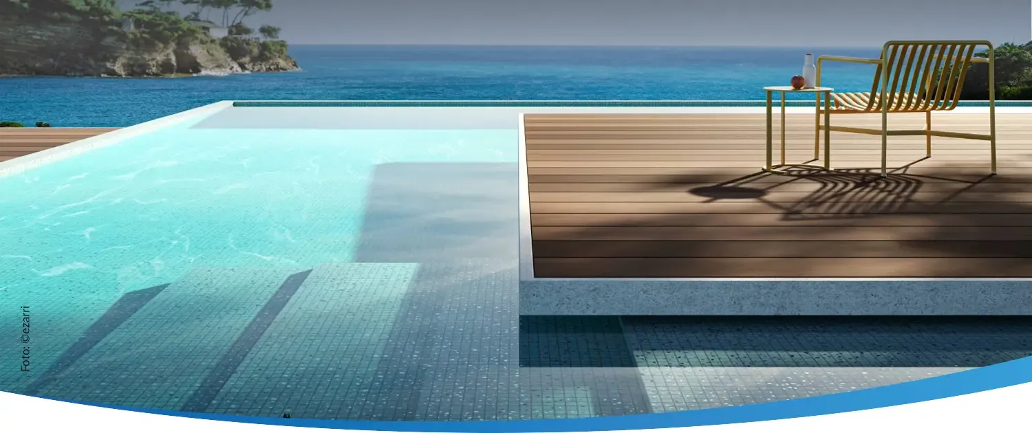 Die ezarri Mosaikkollektionen sind für Innenpools und Außenpools geeignet und verleihen Ihrem Pool ein unverwechselbares Design. Sie können sogar eigene Mosaik-Kombinationen erstellen.